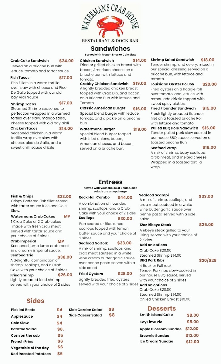 Welcome to Waterman's Crab House, a culinary gem nestled along the picturesque waterfront in Rock Hall, Maryland. This inviting restaurant offers a delightful menu celebrating the seafood bounty of the Chesapeake Bay.
