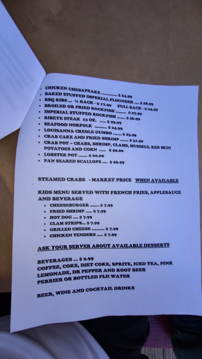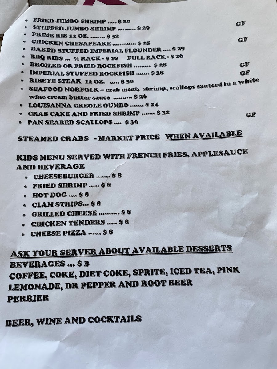 For an unforgettable dining experience, consider the Blackened Scallops and the renowned Waterman's Crabcakes, both praised for their fresh, savory flavors. The Cream of Crab Soup pairs perfectly as a starter, while the Crab Imperial and Fried Oyster Dinner showcase the rich, indulgent offerings of the seaside.